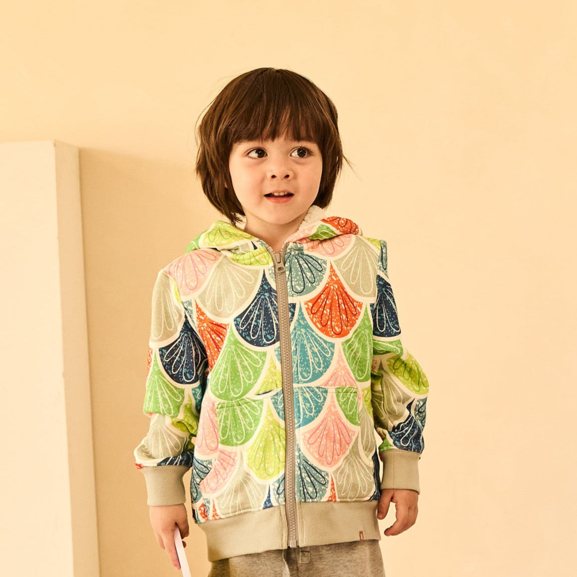 Dive into the wonders of the ocean with our zip-up hoodie. Featuring vibrant shell patterns in red, blue, green, and grey, this beautiful piece celebrates dreams, serenity, hope, and the heartbeat of the sea.